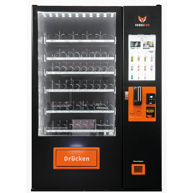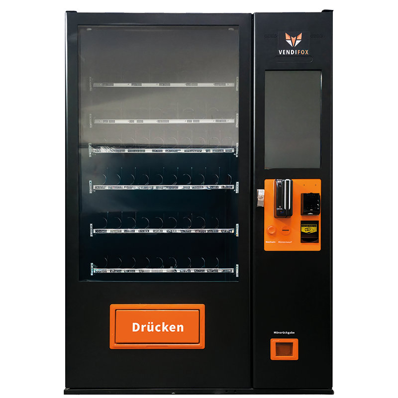 Der Vendifox VISION ist ein moderner Snackautomat mit 22-Zoll-Touchscreen – ideal für Büros, Schulen, Fitnessstudios und mehr. Elegantes Design trifft auf fortschrittliche Technik für eine komfortable, bargeldlose Versorgung.