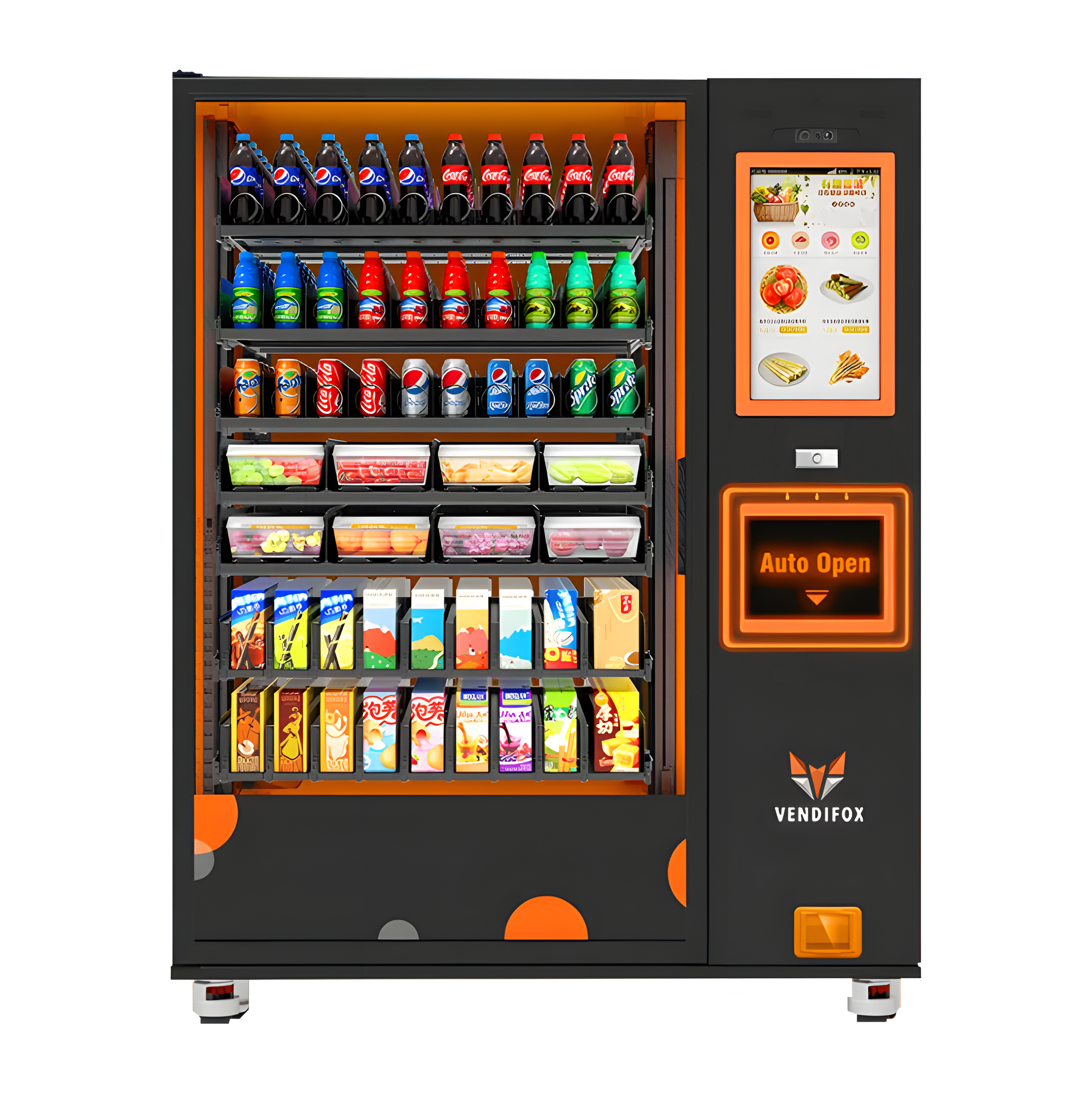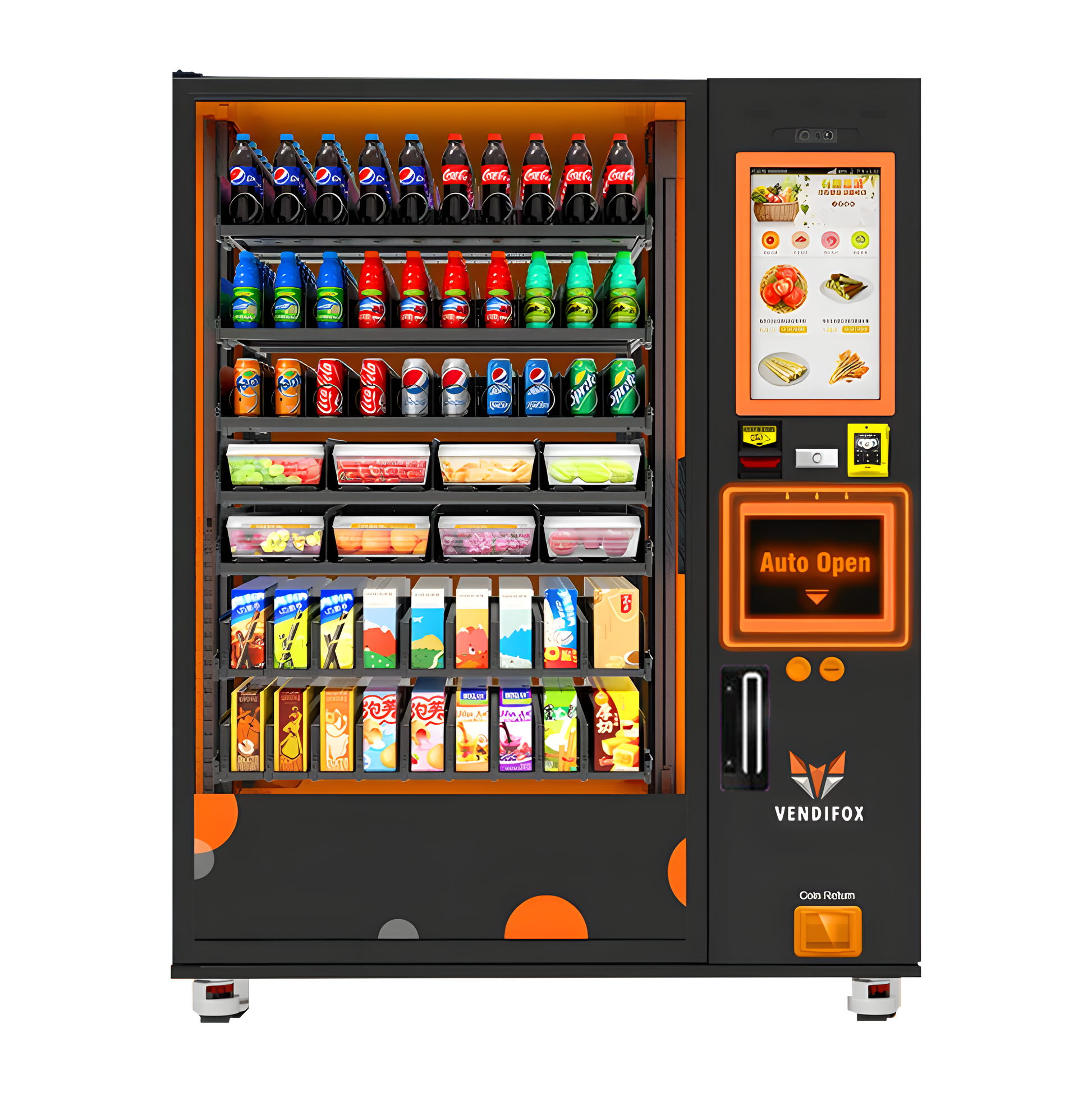 Der Vendifox NOVA ist ein kompakter Snackautomat mit 22-Zoll-Touchscreen und integriertem Liftsystem. Dank intuitiver Bedienung und modernem Design ist er ideal für Büros, Schulen, Fitnessstudios und stark frequentierte Orte.