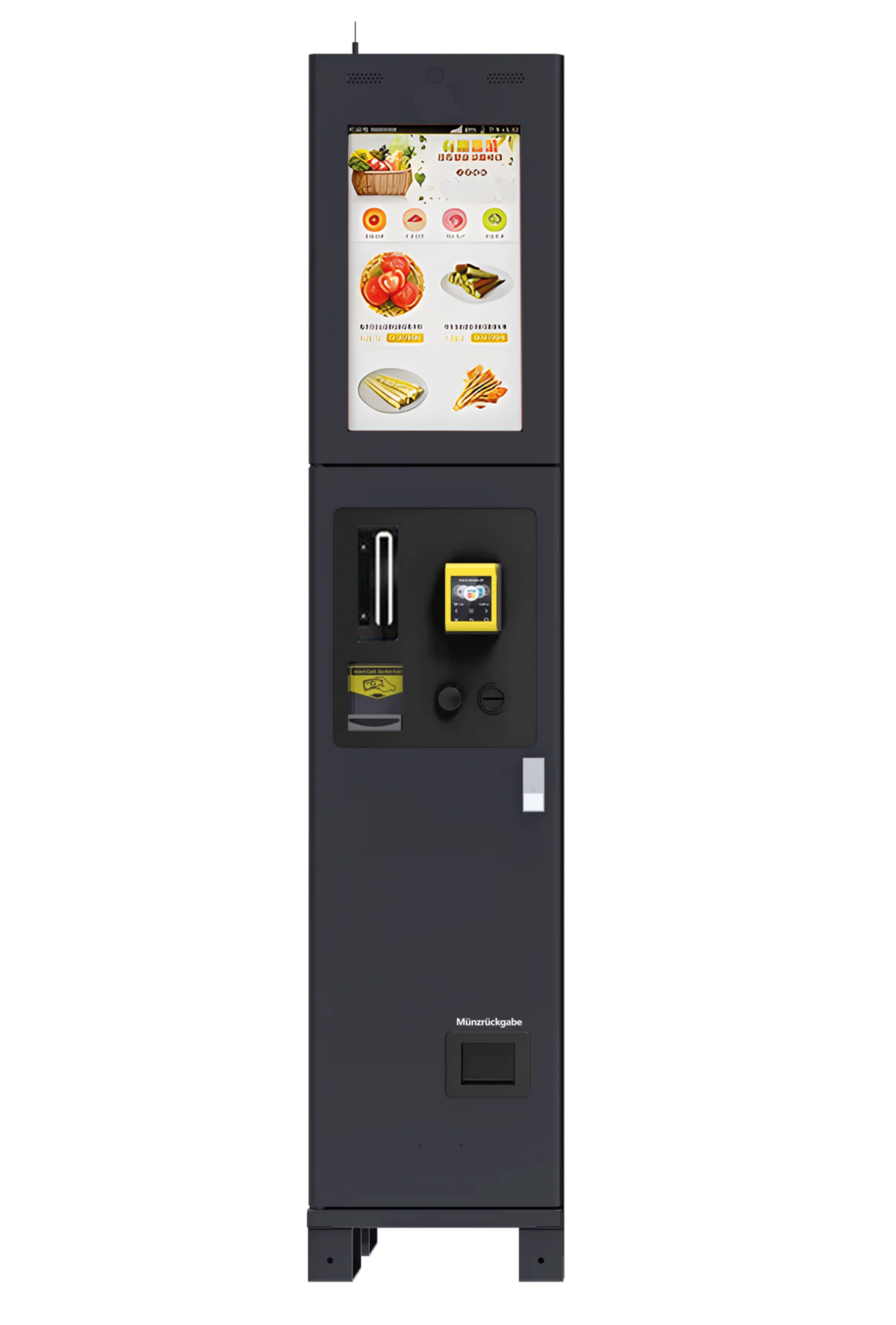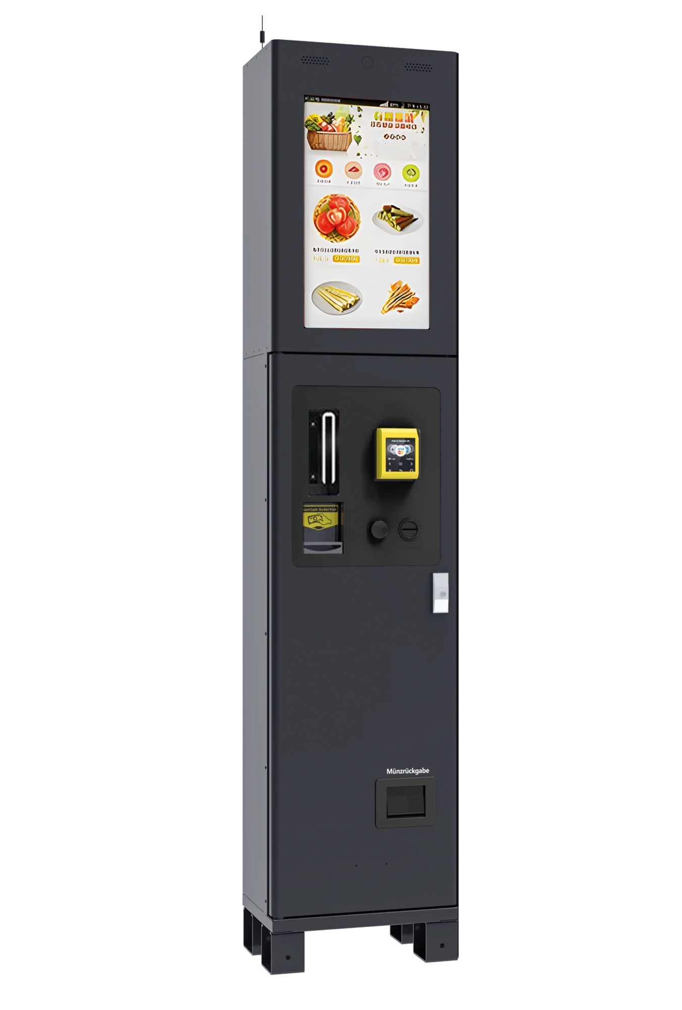 Das Bedienterminal ist die zentrale Steuerungseinheit für moderne Verkaufsautomaten und modulare Vending-Systeme. Über das großformatige 22-Zoll-Touchdisplay navigieren Kundinnen und Kunden intuitiv durch den Kaufprozess – schnell, übersichtlich und zuverlässig.